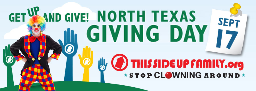 This-Side-Up-NTGD-2015-Facebook-Banner Clown September 12, 2015 × North Texas Giving Day – Support This Side UP! Family